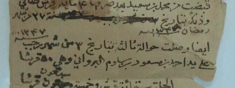 وأشارت أخرى إلى التاجر موسى بن عبدالرحمن، ففي 7 ذي القعدة 1384هـ أرسل عامر بن حمد بن حامد الشيذاني إلى راشد بن سليمان يعلمه بأن يقبض 5000 روبية من موسى بن عبدالرحمن حسن[32] .
